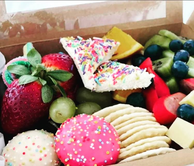 Filled with all your kids favourites, fairy bread, kabana, cheddar cheese, fresh fruit, chocolate, cupcakes and crackers.